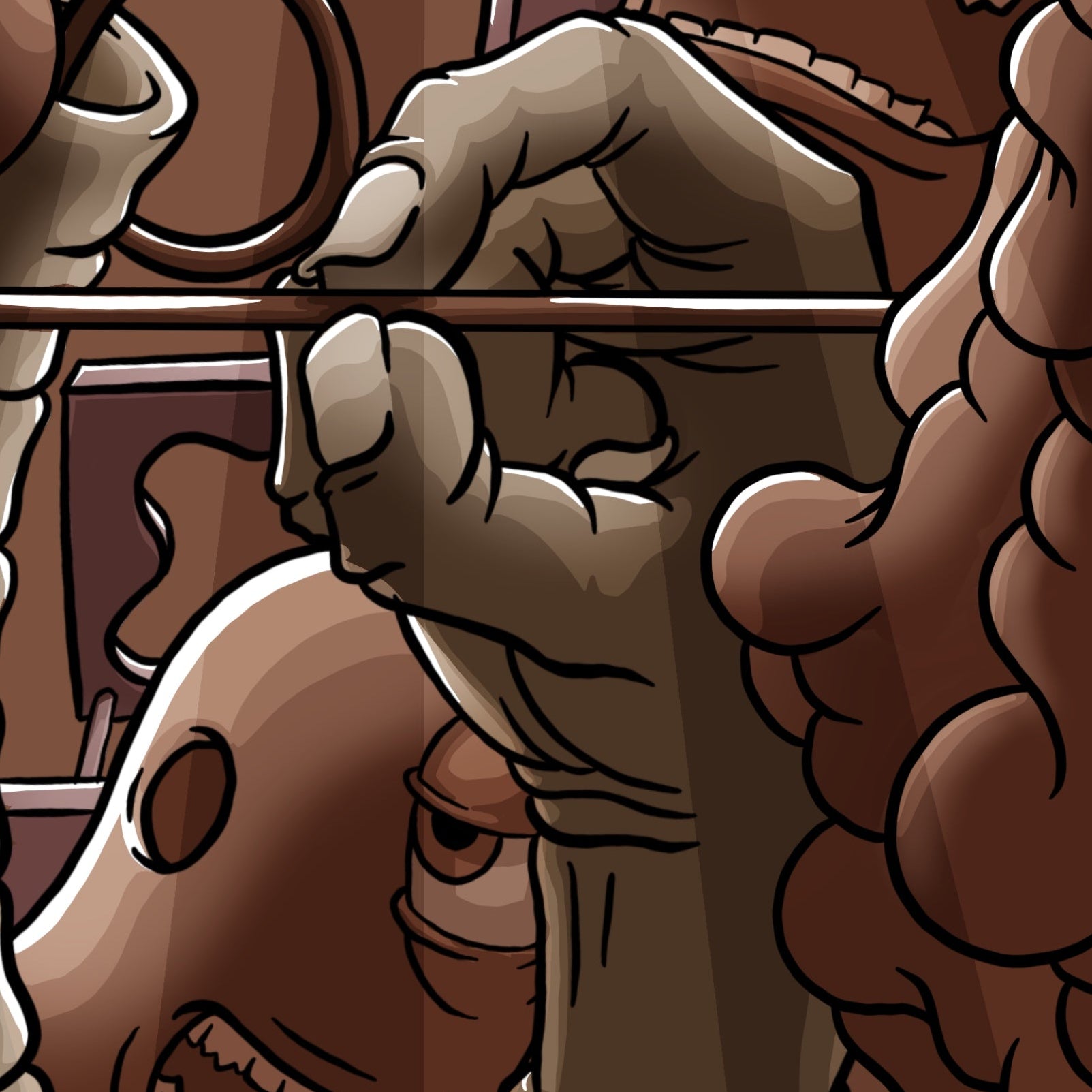 Ce dessin me fait penser à plein de choses, une scène de western, un film d'épouvante de série B, ou bien, quelqu'un m'a dit "ça me fait penser à du Jazz" j'aimais beaucoup l'idée...